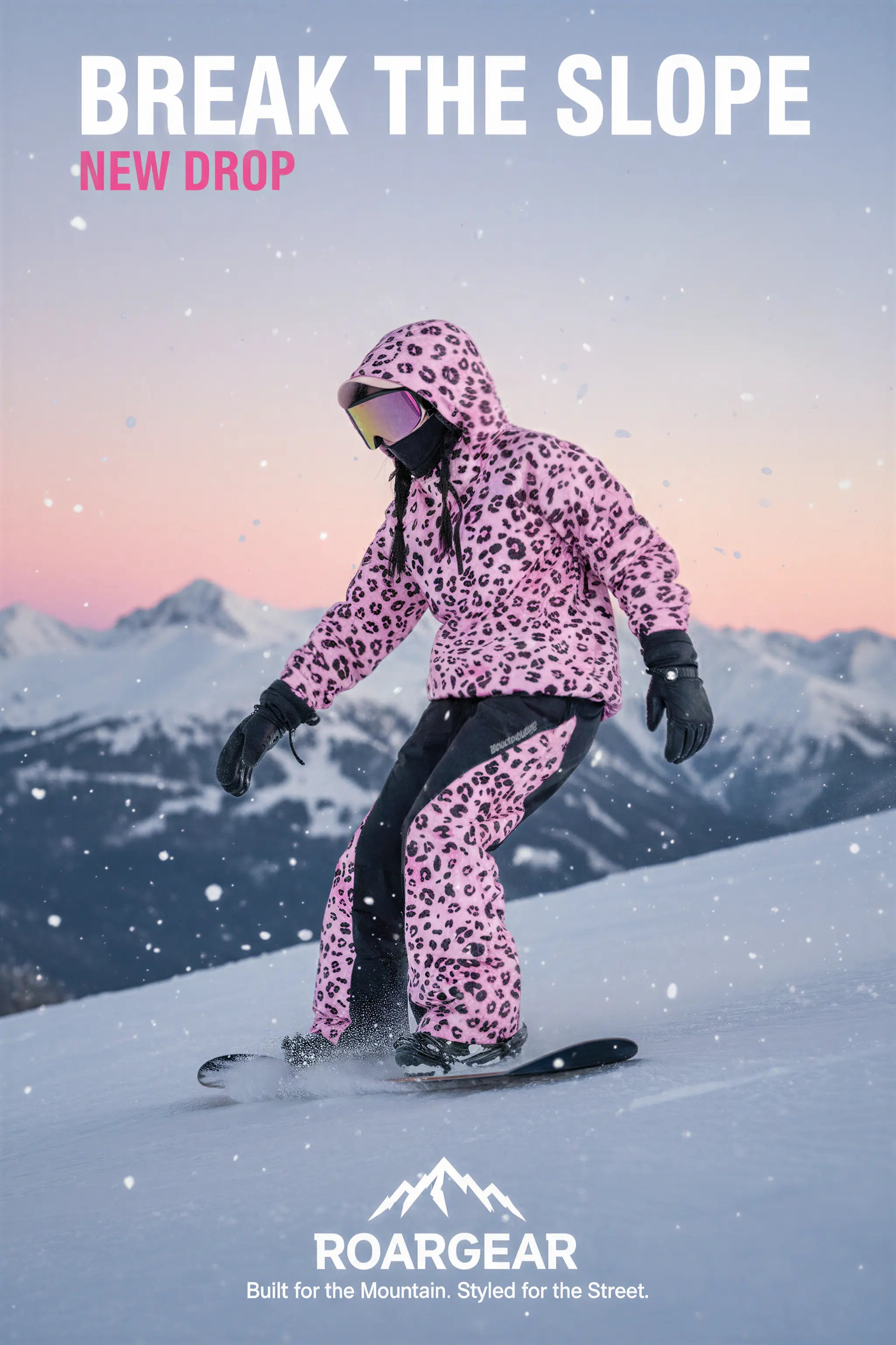 Doorek Pink Leopard Print Ski Anorak - Unisex Streetwear-Style Insulated Snow Jacket
