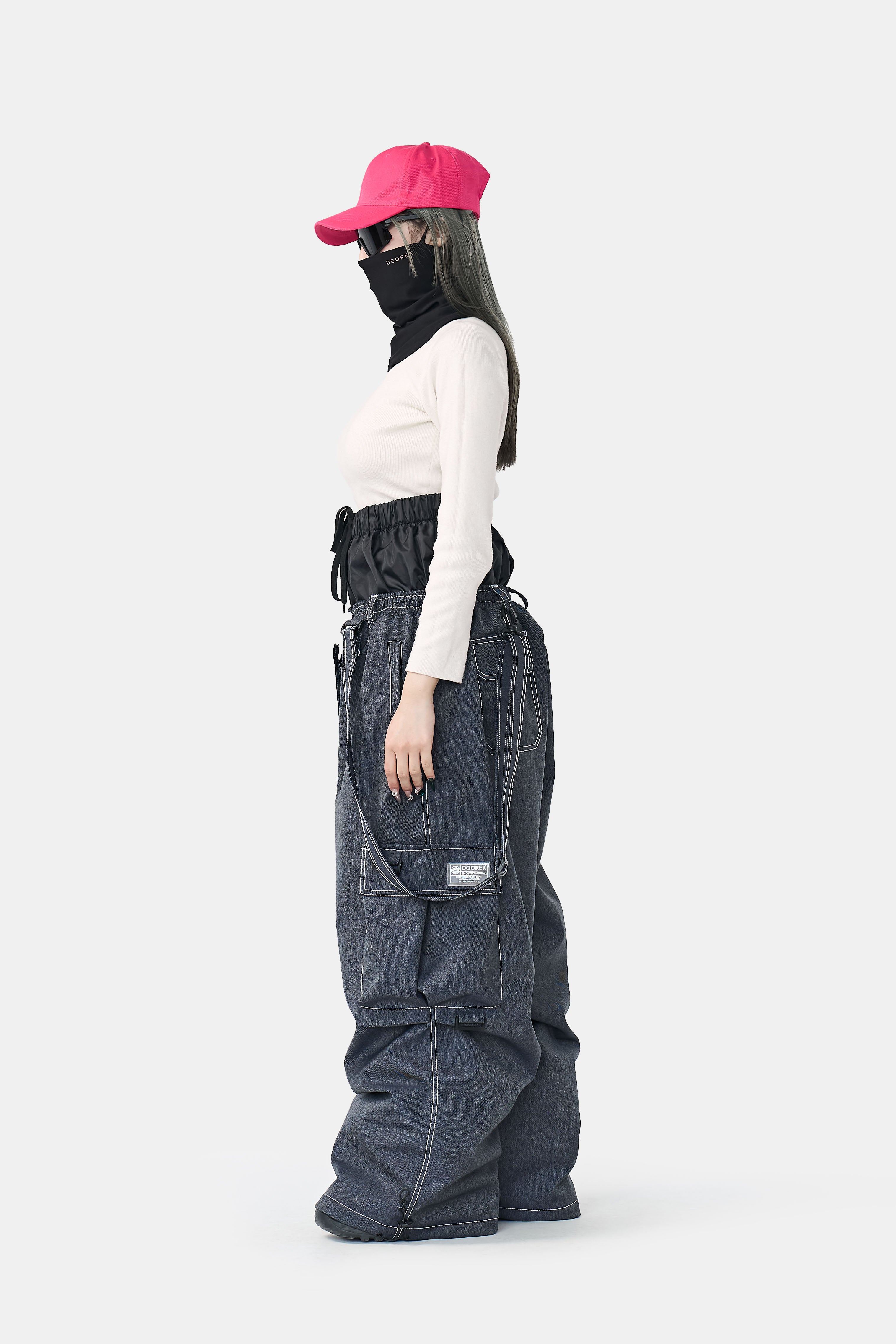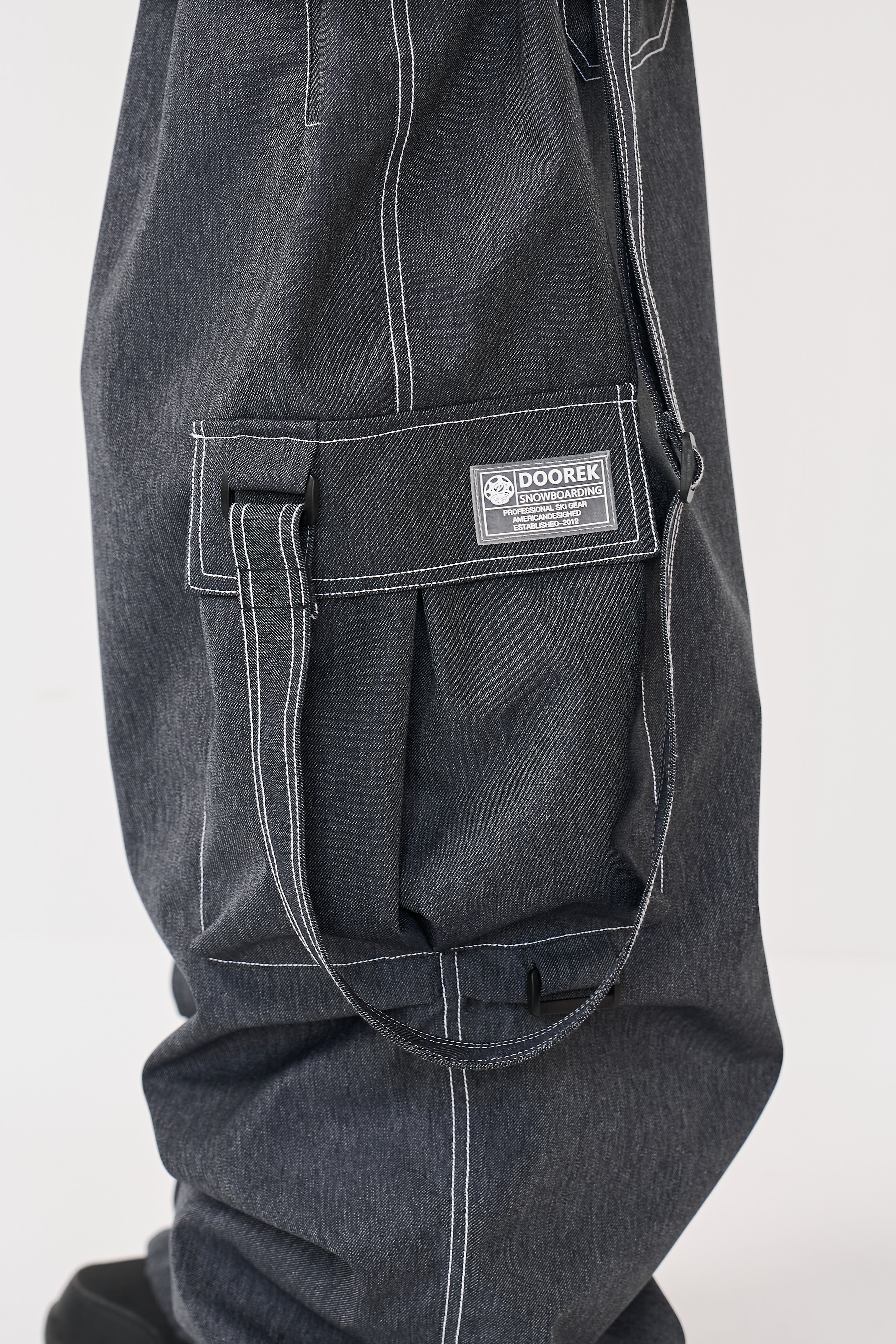 Doorek Snowboard Bib Pants - Loose-Fit Tech Denim for Park Lovers, 360° Mobility & Cold-Proof Construction